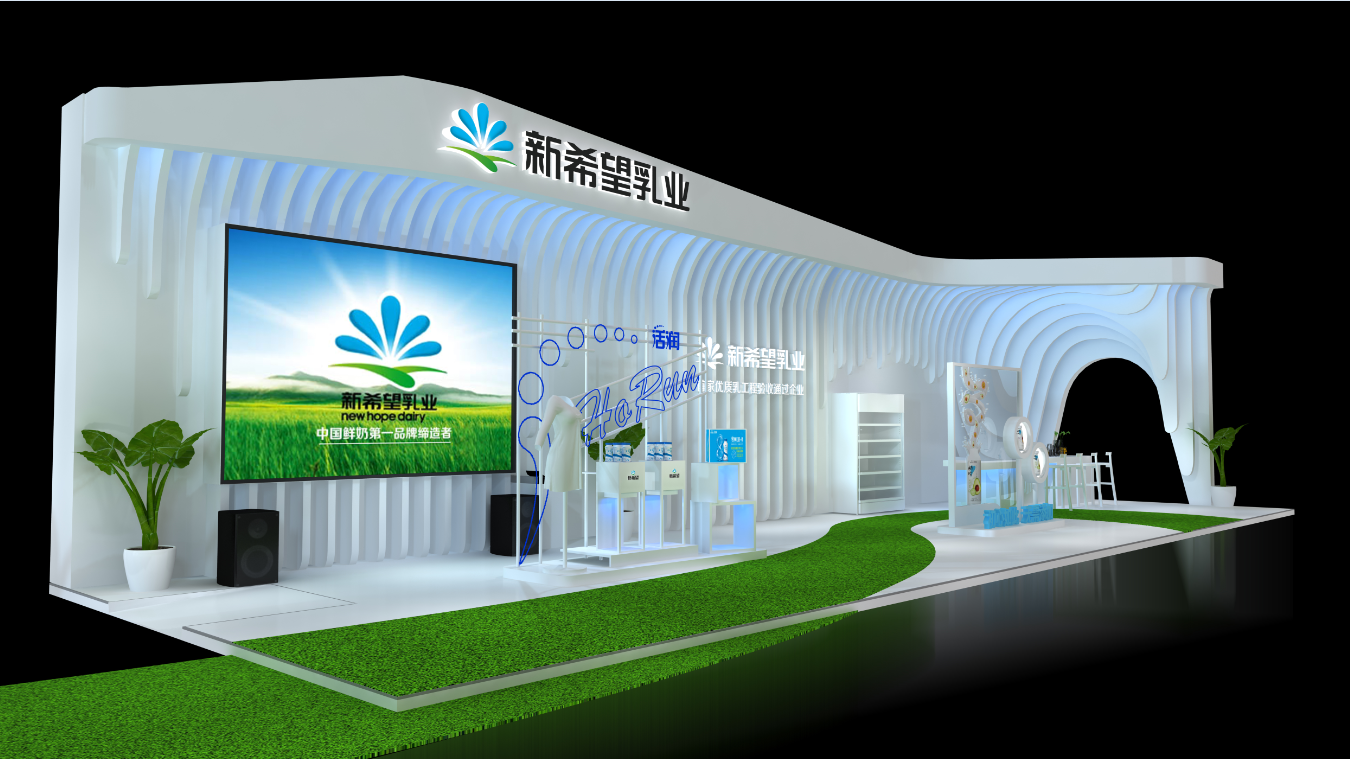 我司在此次奶业展览会中设计及搭建:新希望乳业馆以及施维雅馆。