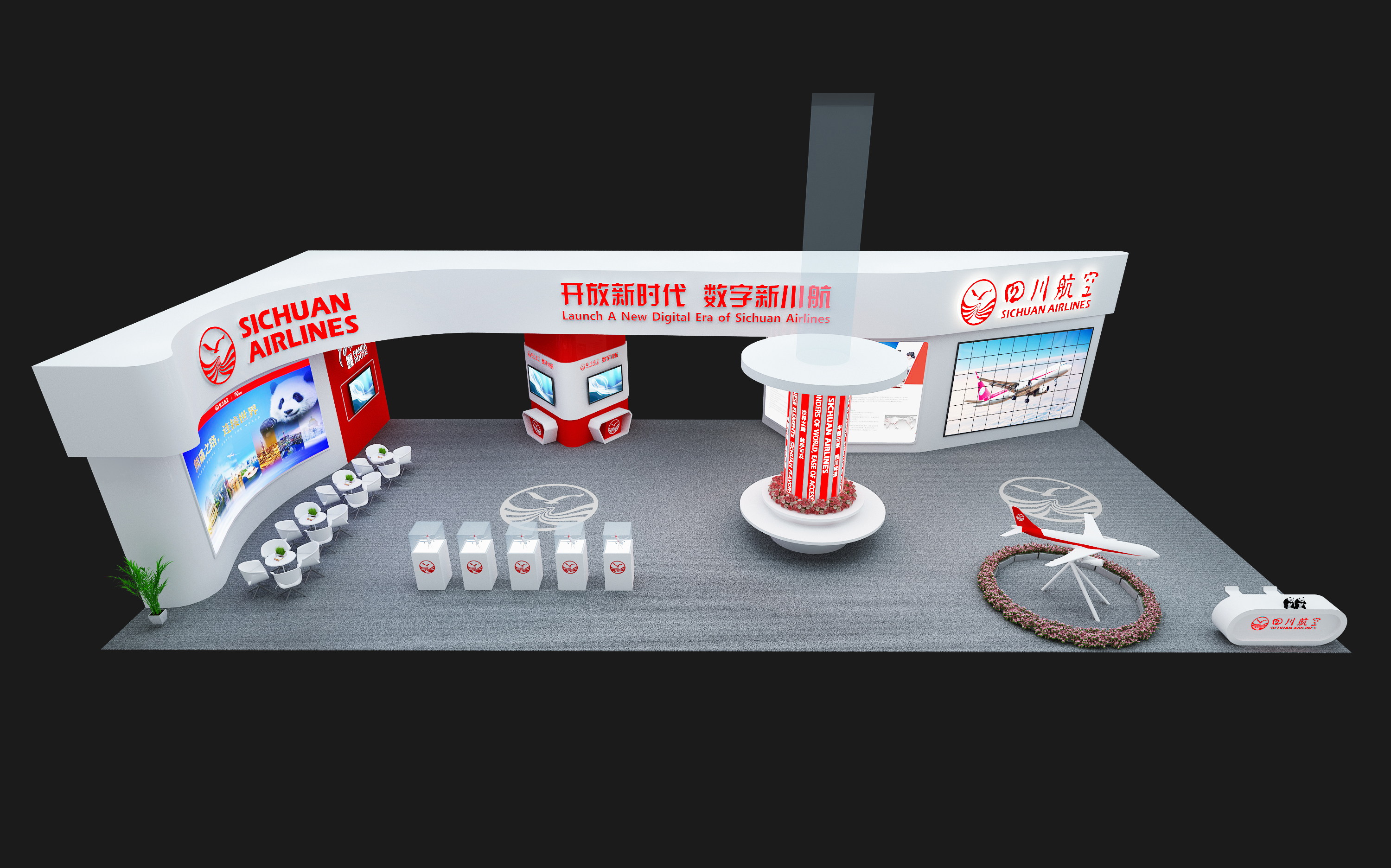以下是此次展会中我司搭建川航展位效果图: