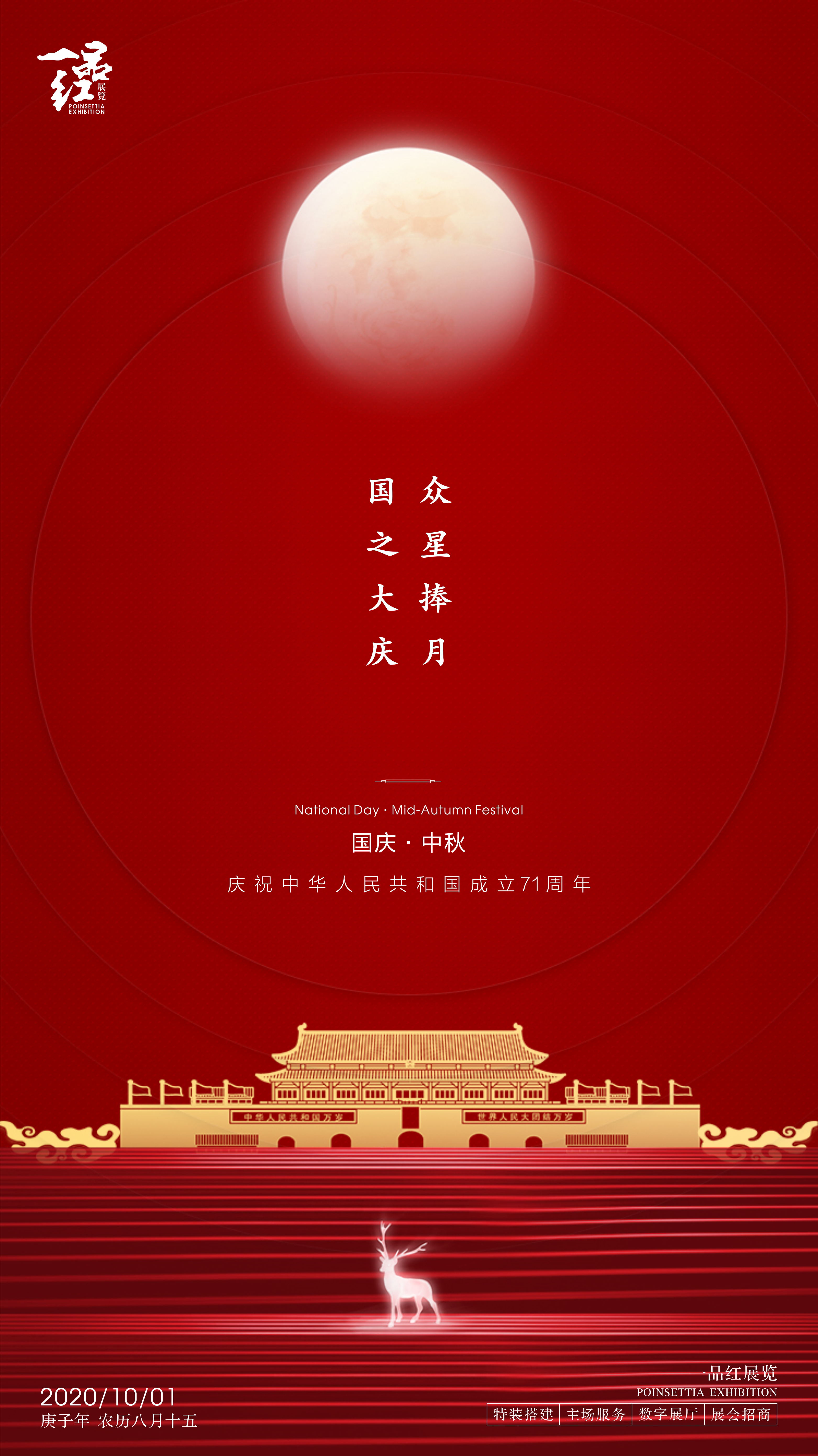 一品红全体工作人员祝大家中秋、国庆双节快乐