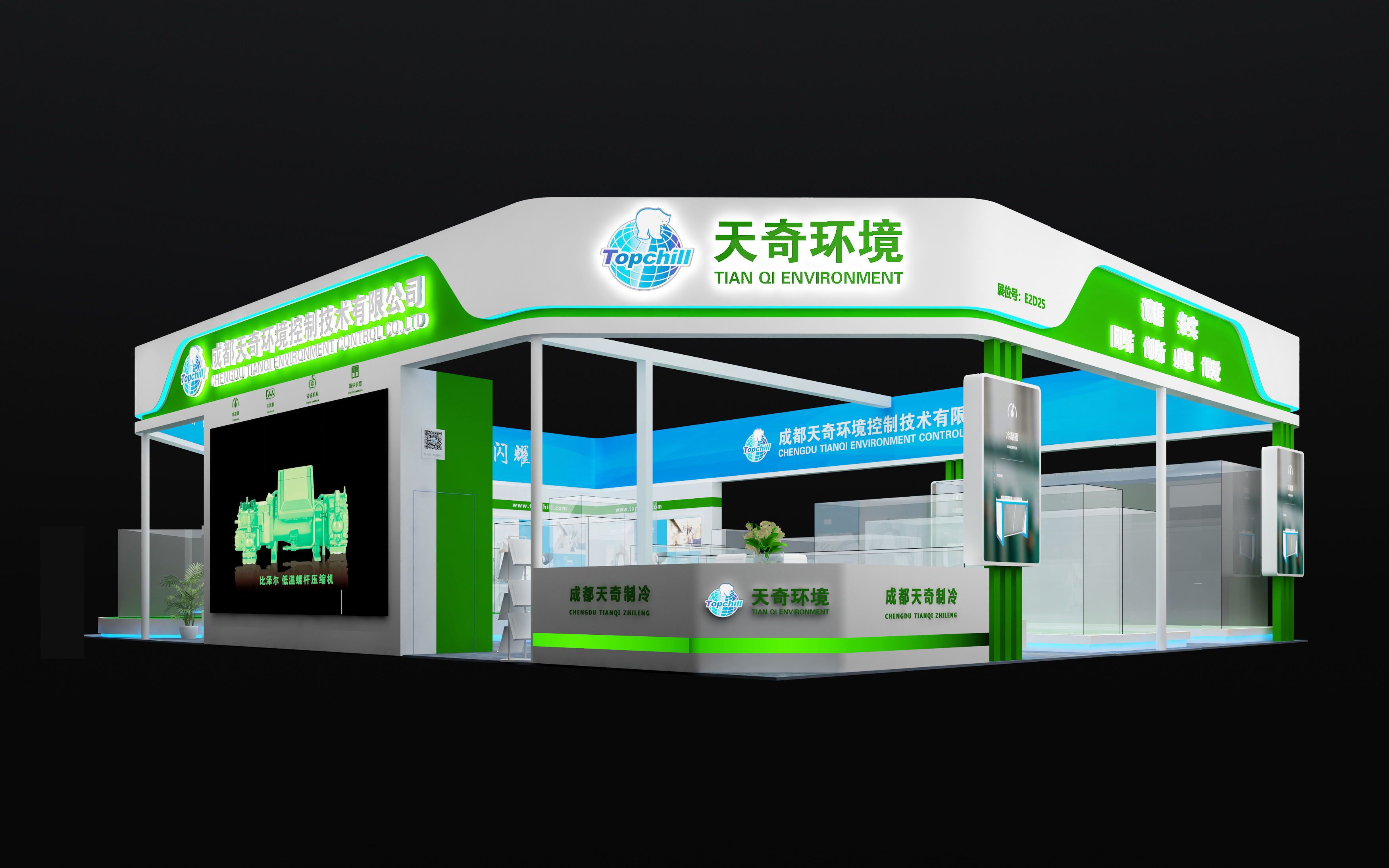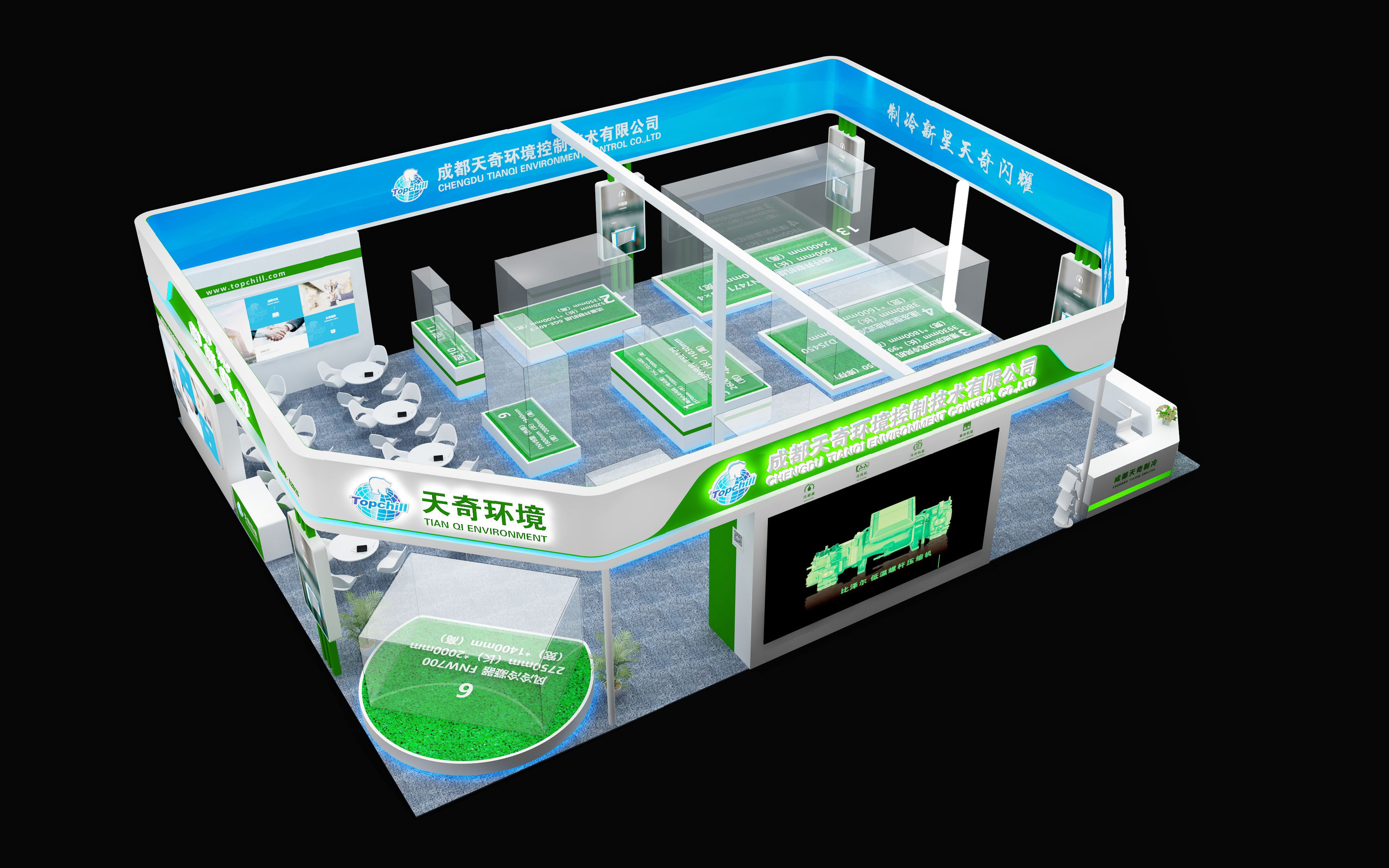 本次制冷展成都一品红展览展示有限公司有幸与成都天奇环境控制技术有限公司携手合作,以诚信为前提,以质量为保障,全心全意微客户服务,完美呈现展台效果。