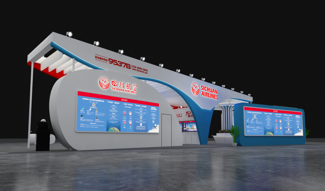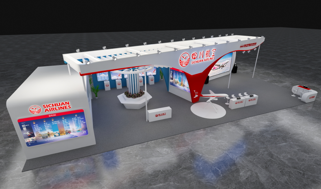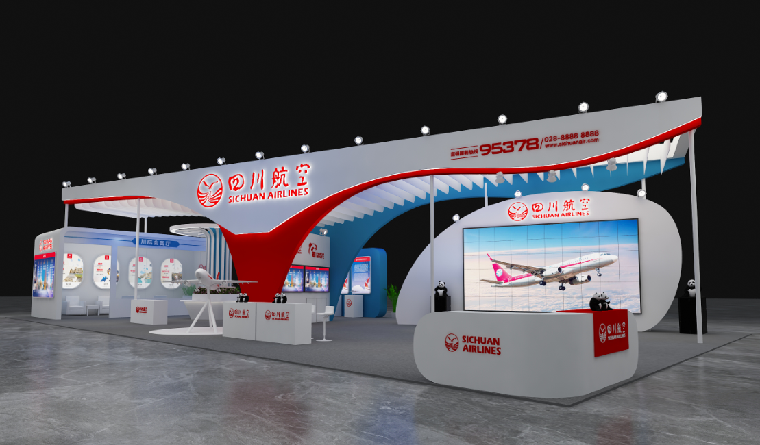 成都一品红展览展示有限公司,带着诚信与质量全程参与四川航空的特装展位设计与搭建,按时按质量完成搭建任务并交付使用。